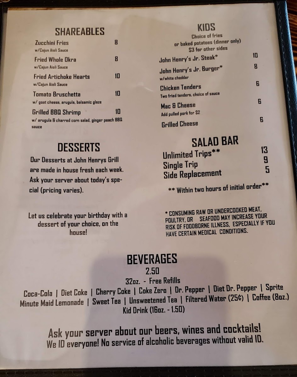 John Henry's Grill is not just a meal; it's an experience filled with warm hospitality and memorable flavors. The enthusiastic reviews from diners reflect the quality and care put into each dish. Come visit and discover why everyone loves this dining gem!